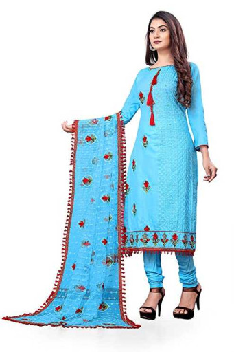 Birvaa Women Cotton Embroidered Dress Materials with heavy embroidered dupatta