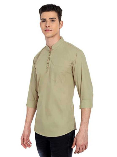 Majestic Man Cotton Solid Casual Short Kurta for Men